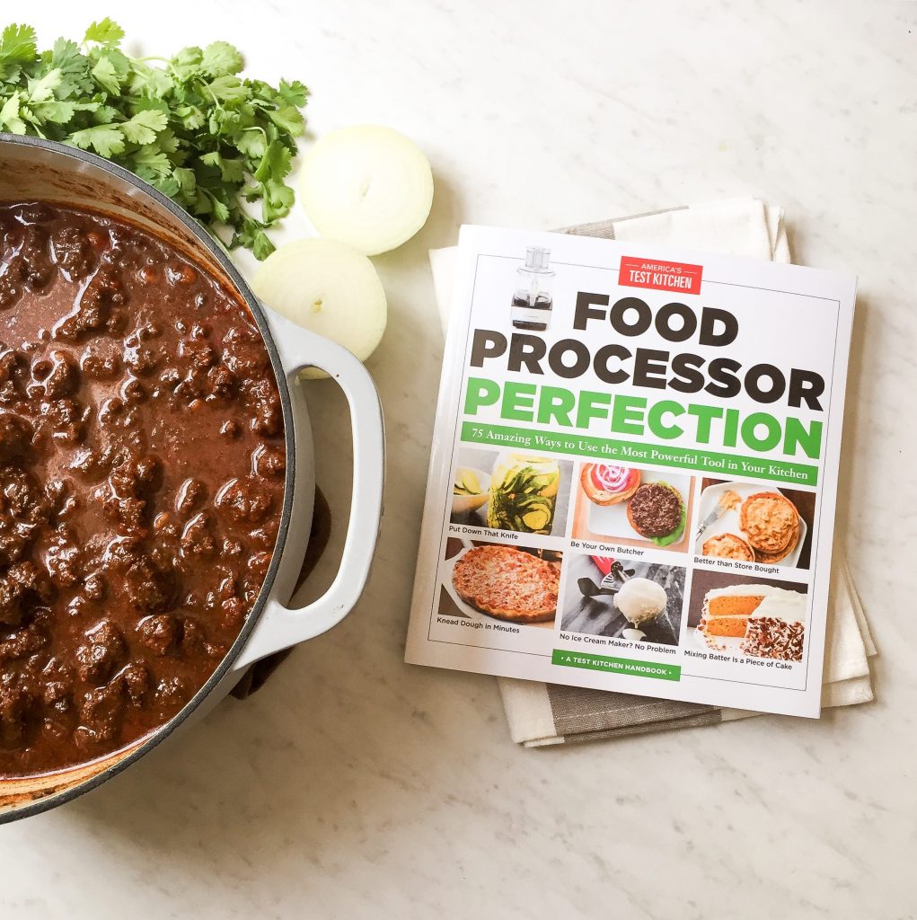 America’s Test Kitchen Food Processor Perfection Cookbook Home-Ground Beef Chili Recipe