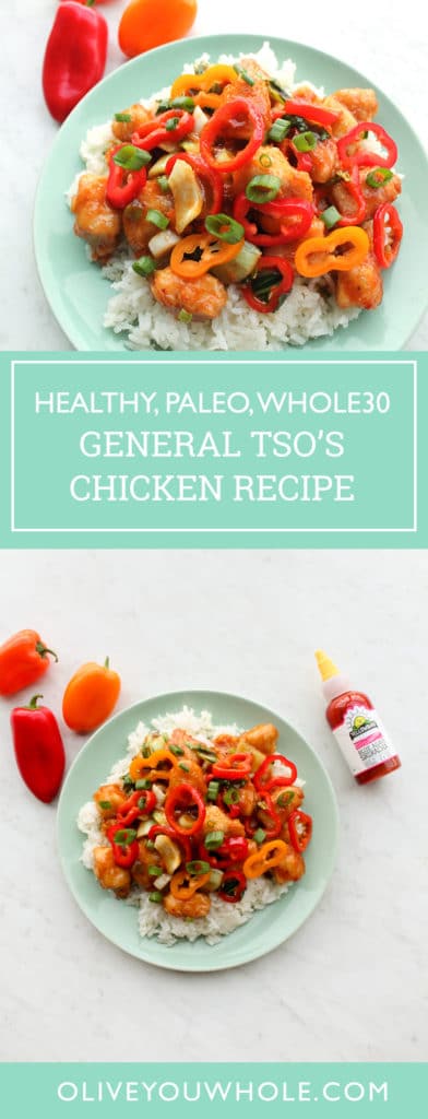 Want to save this healthy, Paleo + Whole30 General Tso’s Chicken Recipe and make it later? Pin it here!
