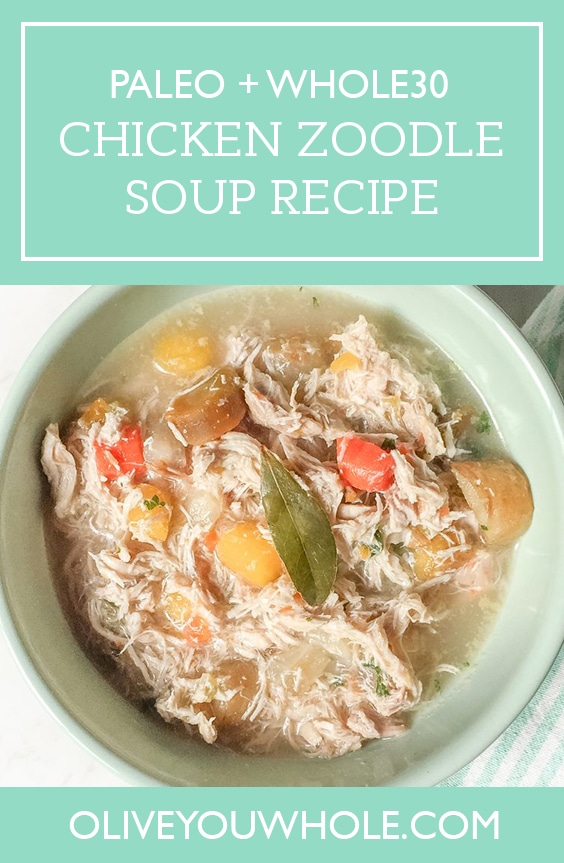 Want to save this Paleo + Whole30 Chicken Zoodle Soup Recipe to make later? Pin it here!