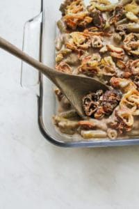 As a forewarning: this recipe is way more effort than the typical stir and cook Green Bean Casserole but it is totally worth it! It is WAY more gourmet and delicious. You’re going to love it and so is everyone else who tries it!