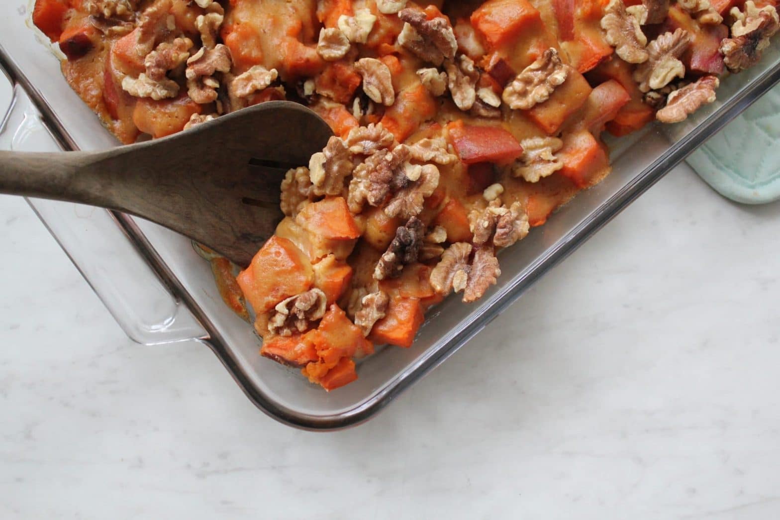 When I think holiday get togethers and family dinners I think casserole. (I blame this on my Southern upbringing! 😉 )I may be a bit bias because I’m from the South but what can I say, I’m a sucker for a casserole! This Paleo + Whole30 Sweet Potato Casserole might just change your life…. for real!
