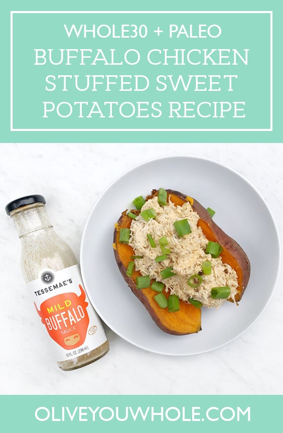 Want to save this Whole30 + Paleo Buffalo Chicken Stuffed Sweet Potatoes for later? Pin it here!