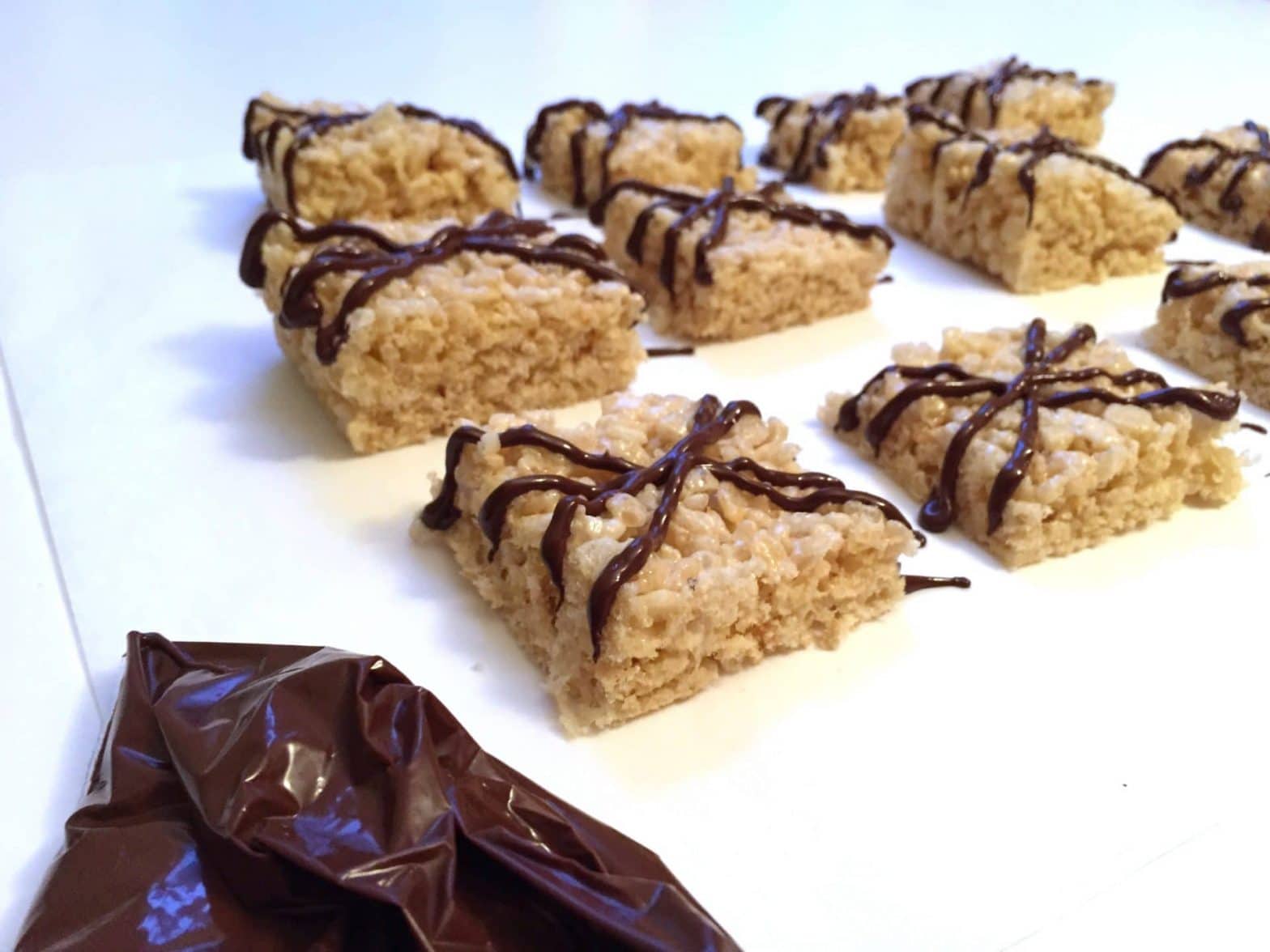 - Add the rice krispie cereal and stir until combined, then place in an ungreased 9x9 in square dish and allow to cool.