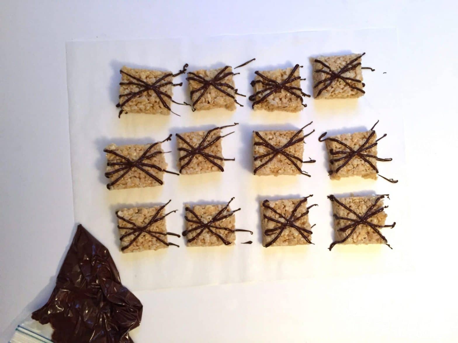 - Pipe an X on the treats, then add another squattier x, making 8 legs total.