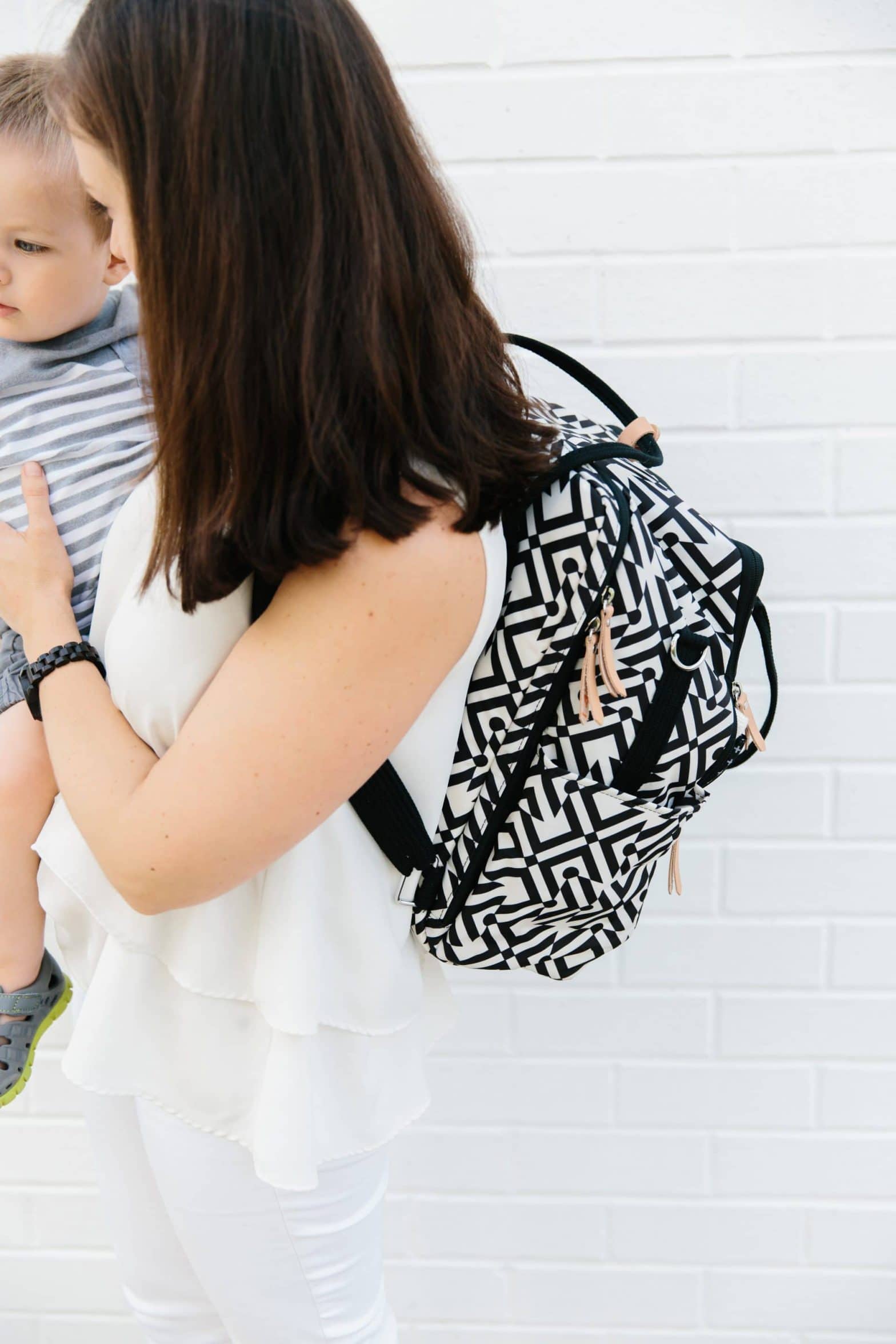 This Petunia Pickle Bottom Inter-Mix Collection Diaper Backpack is what Mommy dreams are made of! The Mazes of Milano pattern is so adorable, and perfect for someone like me who usually wears lots of solid things 😉 The pop of black and white pattern is the cutest! But really, even beyond the gorgeous looks of this bag, it’s the function that really wins it for me!