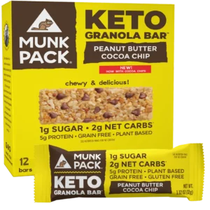 - Peanut Butter Cocoa Chip Keto Granola Bar – 2g Net Carbs