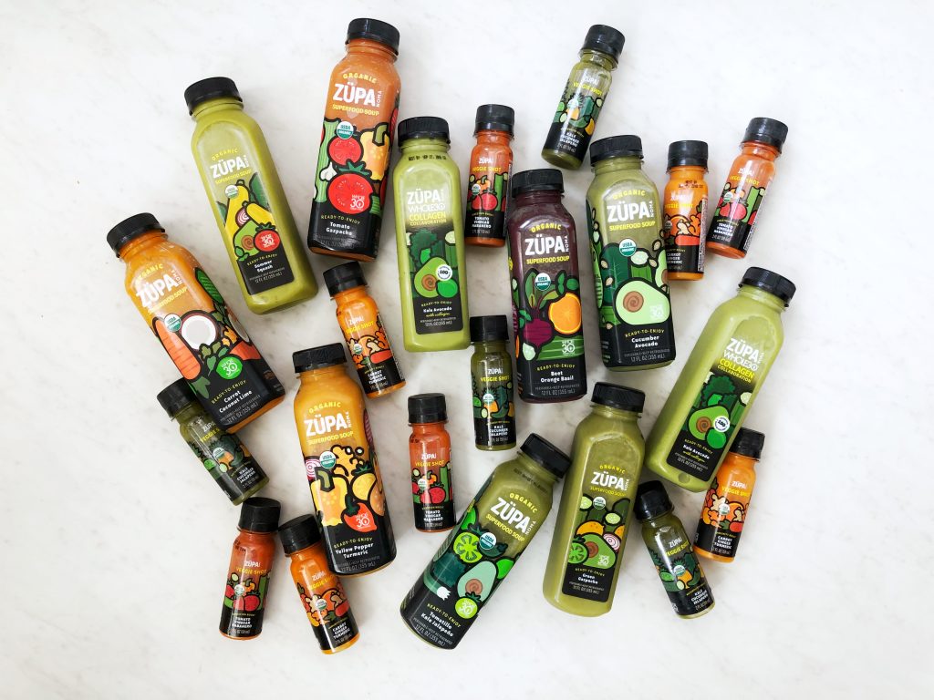 - A ZÜPA NOMA Soup Sampler with eight soup-erb flavors, including: Tomato Gazpacho, Green Gazpacho, Summer Squash, Cucumber Avocado, Yellow Pepper Turmeric, Beet Orange Basil, Tomatillo Kale Jalapeño, and Carrot Coconut Lime