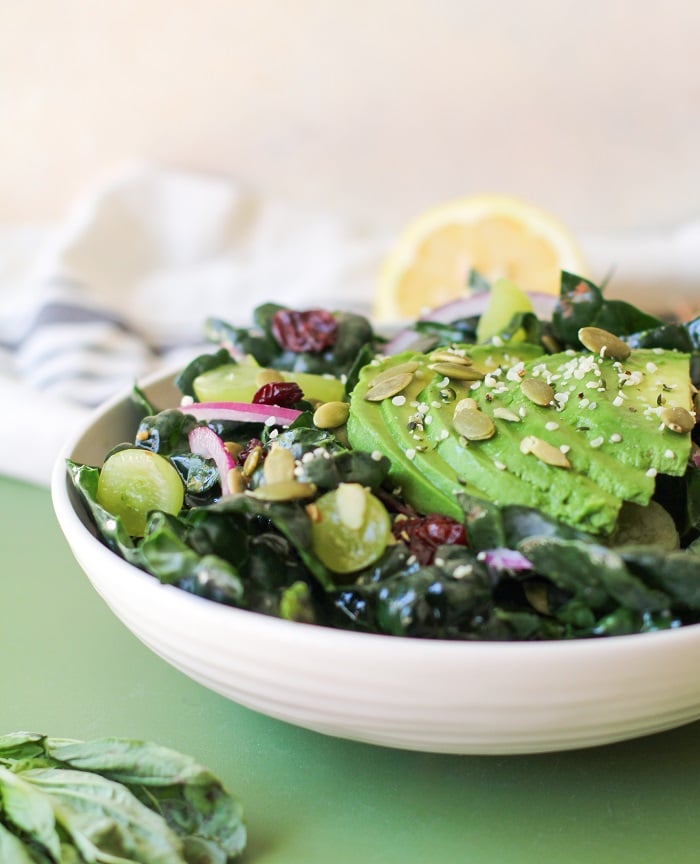 Lemon Kale Basil Salad with Avocado Salad Recipe – The Roasted Root