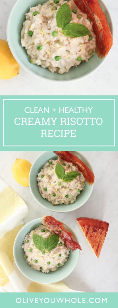 This Creamy Risotto Recipe with Mahón-Menorca Cheese, Peas, Lemon, Mint, and Crispy Prosciutto is SO delicious. I know this combination of flavors may be something unlike you’ve ever tried, but you have to trust me- you will be so pleasantly surprised!