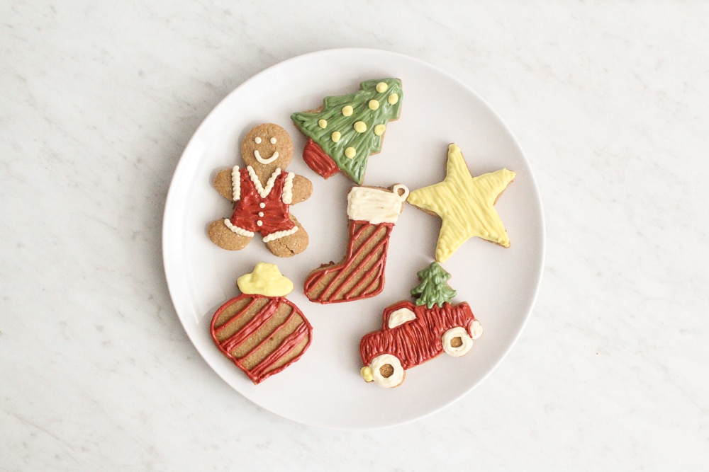 The color: Because we’re using coconut sugar, the cookies will be darker than a traditional sugar cookie is. Don’t worry- you’re not doing anything wrong! They’re still ridiculously tasty! It’s just a factor of using coconut sugar that is a brown color. The end product will be just slightly lighter than a gingerbread cookie.