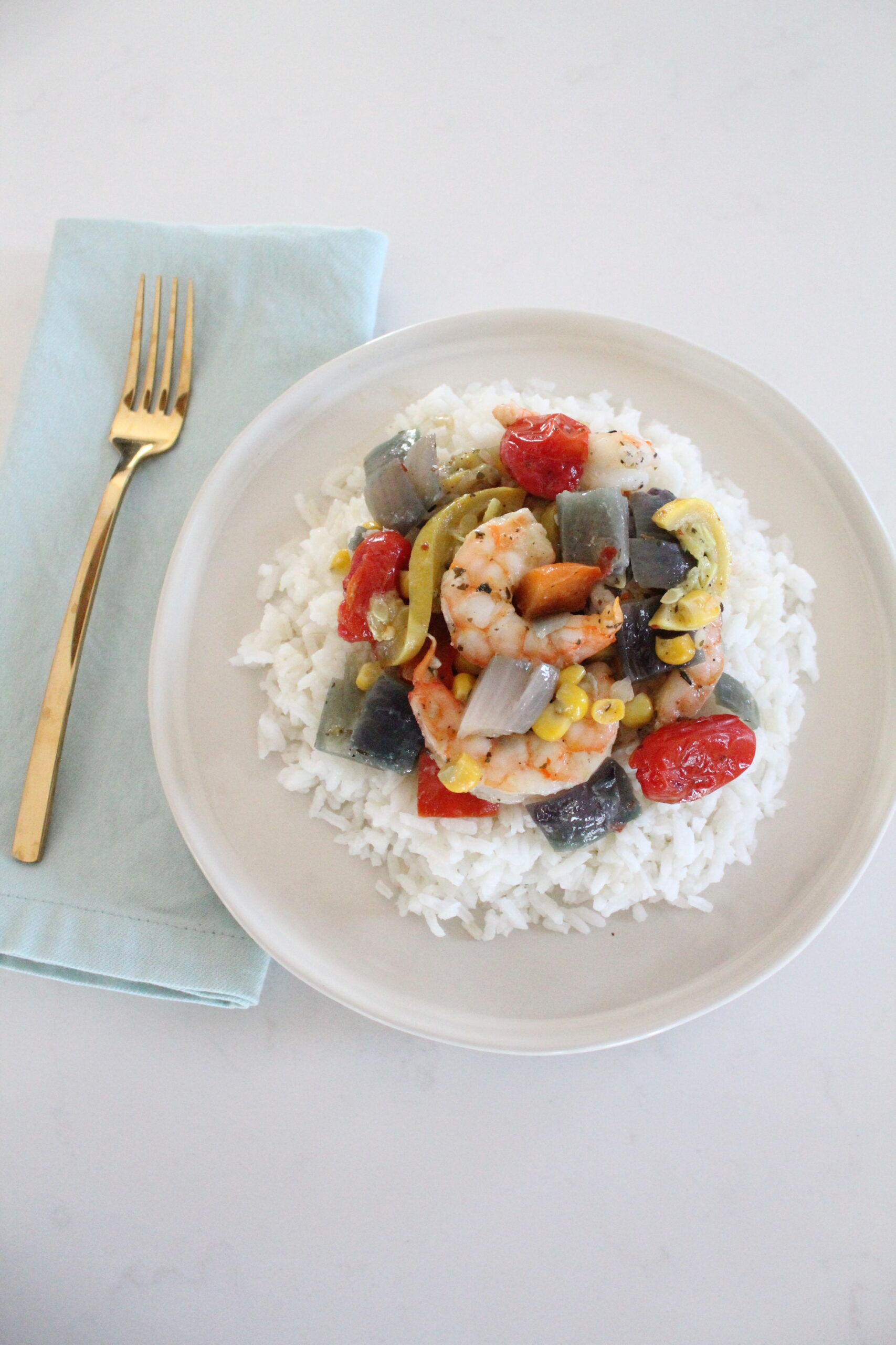 Keep it low carb by just eating the shrimp and veggies or serve over rice or cauliflower rice if you are paleo, grain free, or on Whole30. Enjoy!