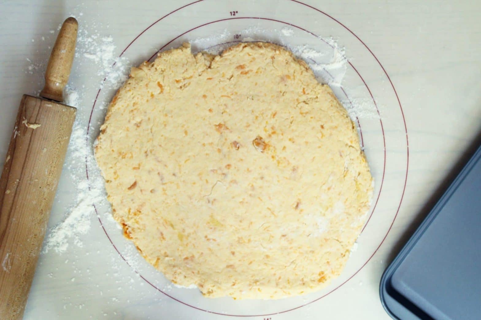 Flour a rolling pin and roll the dough until it is about 3/4 in- 1 in thick. Watch carefully and don’t roll the dough too thin- they will rise, but the thickness of the dough is what makes them thick and fluffy!
