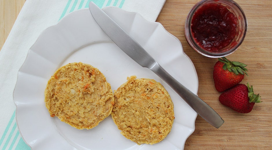 Next, pop them in the oven on 325 degrees for 15-20 minutes, depending on the oven! They will look light and fluffy when they’re done. You’ll be able to tell if they’re still too doughy when you pull them out. Then enjoy with your favorite Whole30-approved jams and jellies!