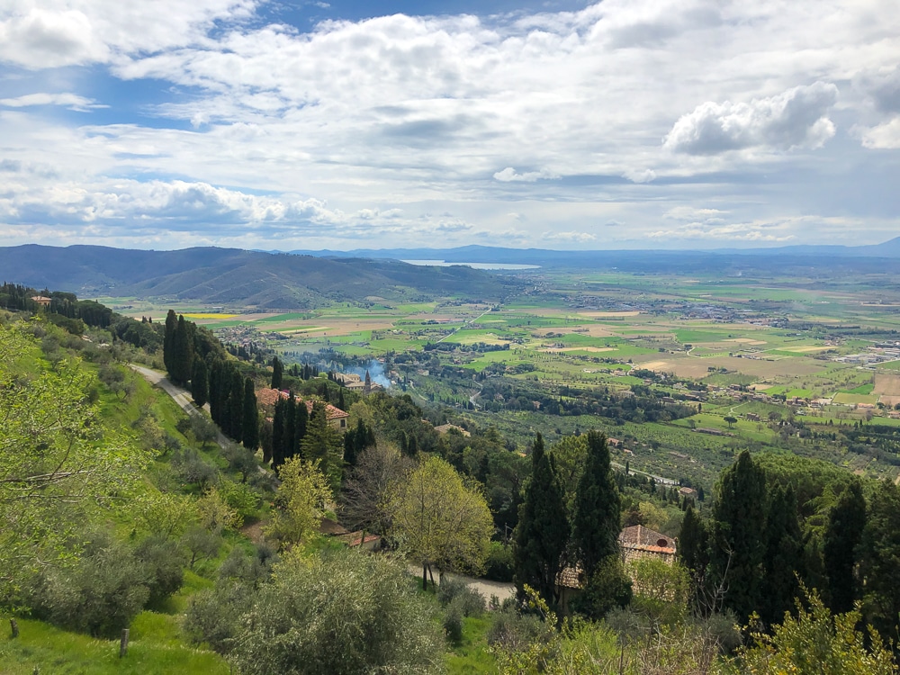 Next you’ll turn right (right by the Caffè) onto Localita Torreone. This road takes you along the very edge of Cortona, and from it you can see the gorgeous Tuscan landscape below.