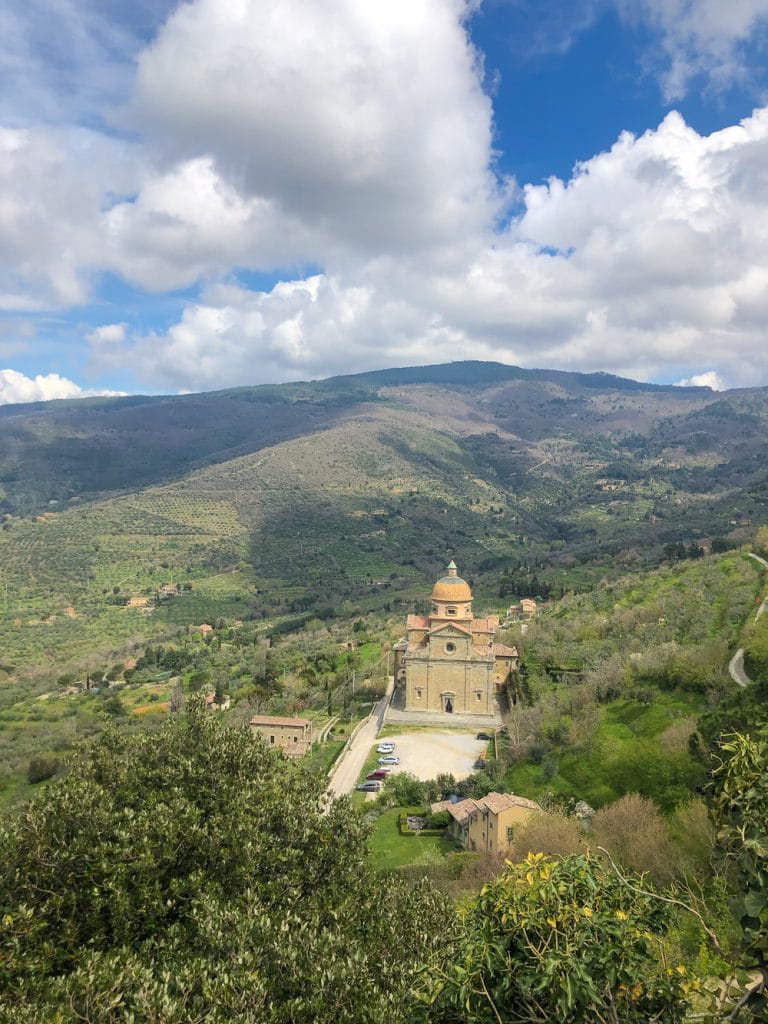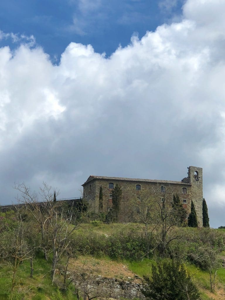 We decided to continue staying in our precious Florence Airbnb and make a day trip to Cortona. It’s a really easy train ride! Once we got to the train stop for Cortona (the Camucia-Cortona stop), we took a taxi to the top of the hill where the town of Cortona is.
