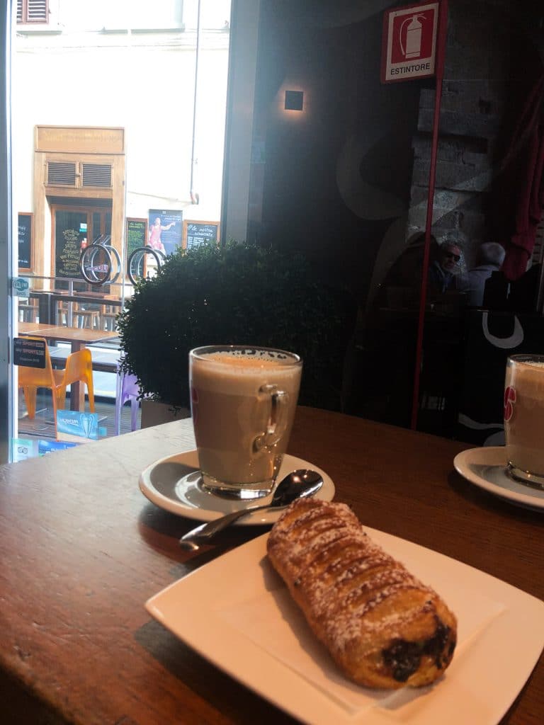 The next morning we had a very Italian breakfast of lattes and pastries at a place in the same Sante Croce block that our Airbnb was in! It’s called Oibó Ristorante (here on Google maps). It was a precious little corner cafe overlooking the Santa Croce. We eventually did get tired of the standard pastry-and-espresso breakfasts, but not yet 😉